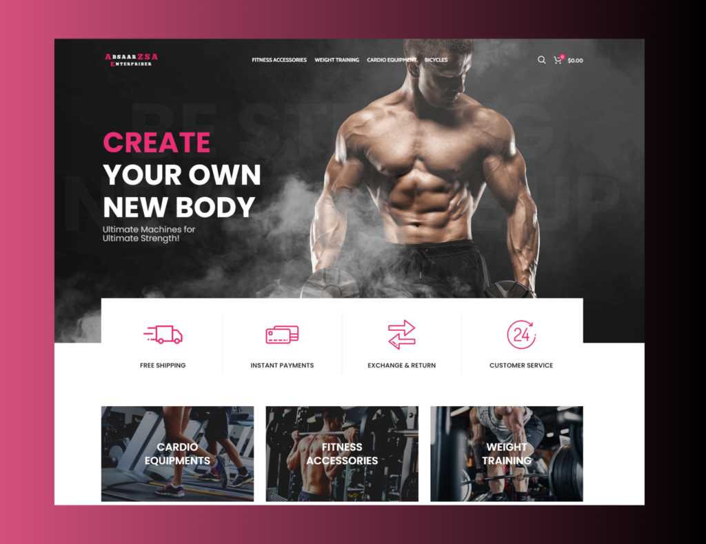 The Absaar Zsa Enterprises project aimed to create a comprehensive and user-friendly online platform for high-quality gym equipment and fitness solutions. Designed to cater to both individual fitness enthusiasts and commercial fitness centers, the website offers an extensive selection of products from top brands.