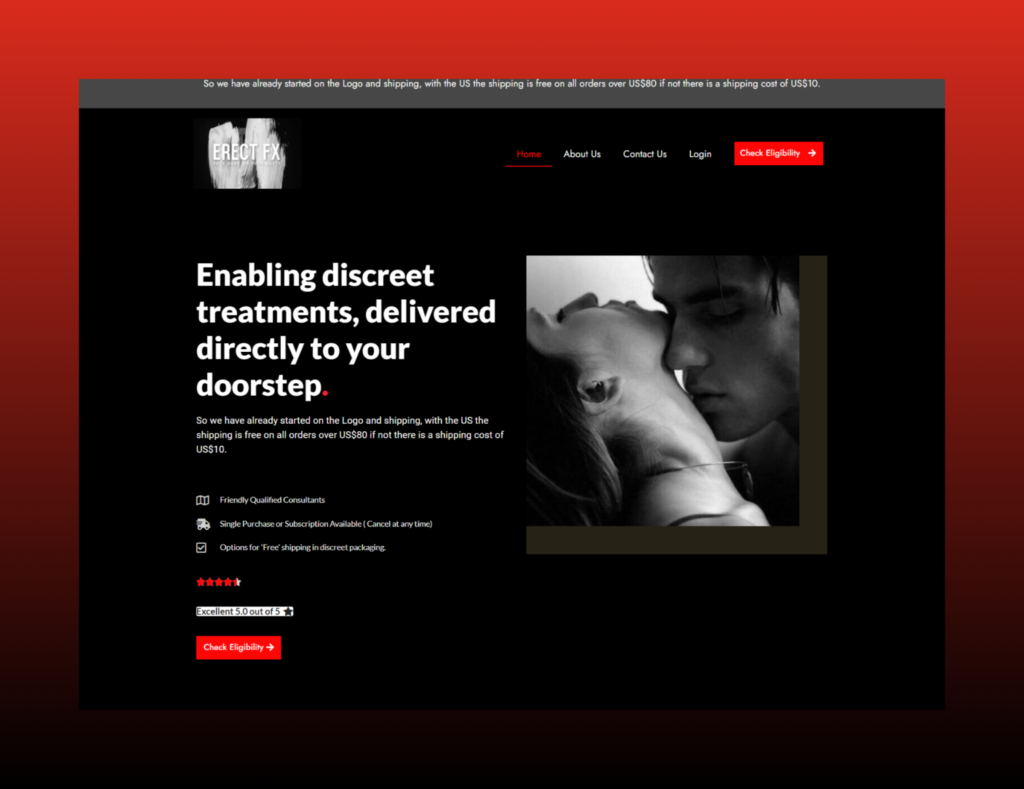For ErectFX, our goal was to create a website that upholds the values of discretion and convenience while providing essential health solutions. We designed a platform that emphasizes global standards of care and confidentiality, catering to users seeking reliable and private treatment options.