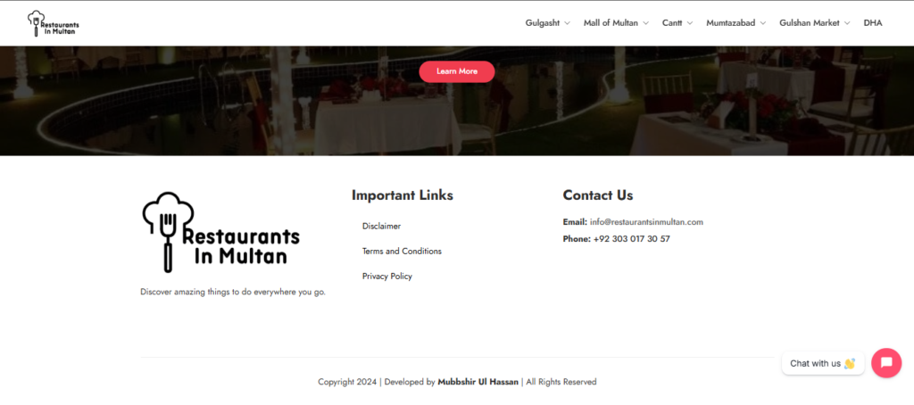 RestaurantsInMultan.com was developed by Inno Web Sols as a proof-of-concept project to show how local SEO and directory-based platforms can drive organic traffic and customer inquiries.